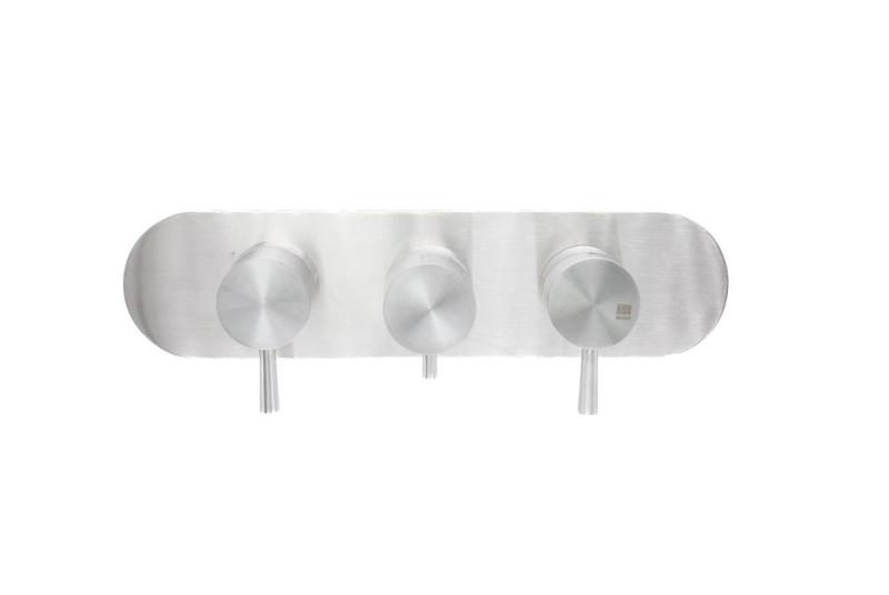Με δύο ξεχωριστές βρύσες, μπορείτε να χειρίζεστε τις συνδεδεμένες εξόδους νερού ανεξάρτητα η μία από την άλλη, όπως το ντους κεφαλής και το ντους χειρός. Αυτό προσφέρει βέλτιστη ευελιξία και έλεγχο της άνεσης και της κατανάλωσης νερού. Ο χειρισμός γίνεται μέσω κομψών λαβών, ενώ η τετράγωνη ροζέτα κάλυψης 80 x 80 mm προσφέρει μια κομψή, μοντέρνα φινίρισμα στον τοίχο.
