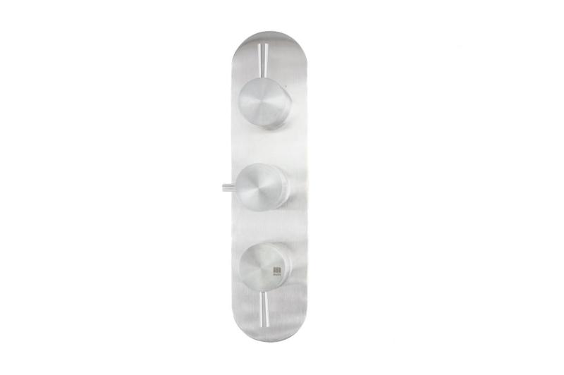 Με δύο ξεχωριστές βρύσες, μπορείτε να χειρίζεστε ανεξάρτητα τις συνδεδεμένες εξόδους νερού, όπως το ντους κεφαλής και το ντους χειρός. Αυτό προσφέρει βέλτιστη ευελιξία και έλεγχο της άνεσης και της κατανάλωσης νερού. Ο χειρισμός γίνεται μέσω κομψών λαβών, ενώ τα παρεχόμενα καλύμματα εξασφαλίζουν μια τακτοποιημένη και μινιμαλιστική τελική επεξεργασία του τοίχου.