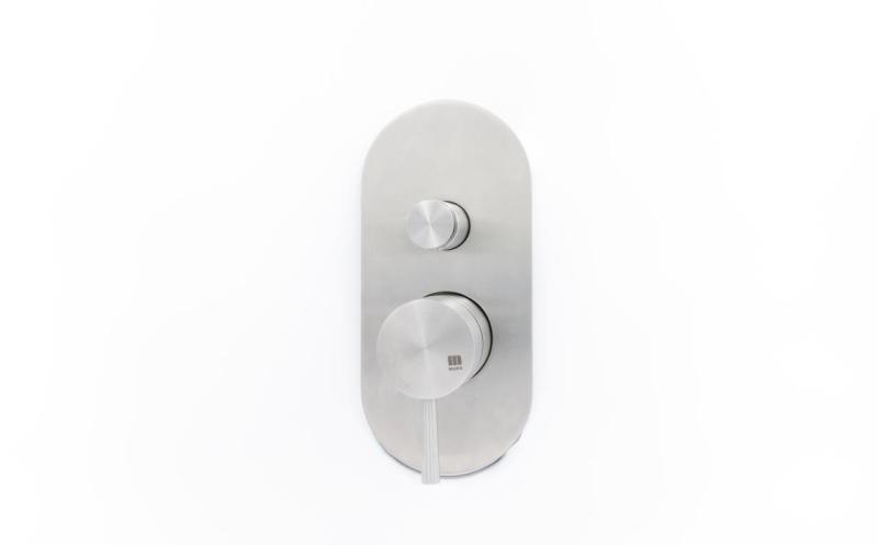 Χάρη στο κουμπί αλλαγής, μπορείτε να εναλλάσσετε εύκολα μεταξύ των δύο εξόδων, όπως το κύριο ντους και το ντους χειρός. Ο χειρισμός γίνεται μέσω ενός κομψού μοχλού, ενώ η παρεχόμενη ροζέτα καλύψης εξασφαλίζει μια τακτοποιημένη και μινιμαλιστική τελική επεξεργασία του τοίχου.